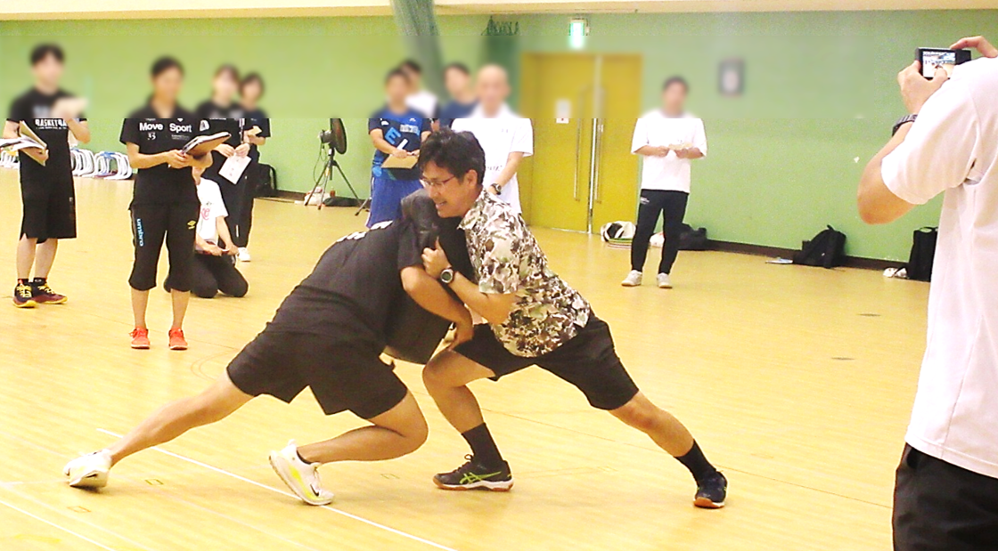 (例:相手の圧力を全身で受け取りながら、左右にずらすことなくお互いに真正面に押し合っていくことを通して、“いま、ここ”に確かにある、相手の“意志”や“存在”をダイレクトに感じ取っていく活動にも取り組みました。押し込まれても、笑顔が自然と溢れてくる活動であり、“お互いの全力の発揮”が、体と心を喜ばせてくれることを追体験しました。)
