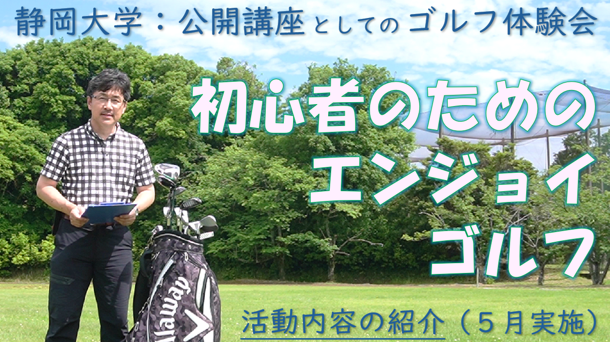 (8)静岡大学:公開講座としての「ゴルフ体験会」が5月末に開催されます(お世話役:赤田研究室)。例年4月よりご参加申込の受付を開始しますので、ご希望の方はご検討ください。詳細につきましては、後日の公開となります(静岡大学地域創造教育センターより)。健康のための運動習慣のひとつとして、「ゴルフのある人生」をお楽しみいただければ幸いです。