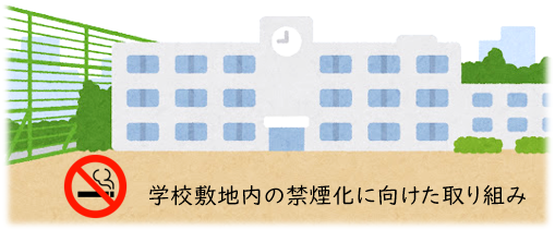 当時、多くの学校で発生していた児童・生徒や教職員の受動喫煙の被害を防止するために、県下一律での「学校敷地内全面禁煙化」の実施に向けての様々な社会活動・研究活動を進めました。